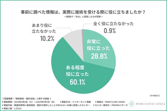 美容施術・整形経験者の約9割が事前に調べた情報が役に立ったと回答!