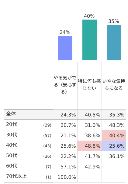 ・やる気が出る:24.3% < いやな気持ちになる:35.3%(▲11ポイント)