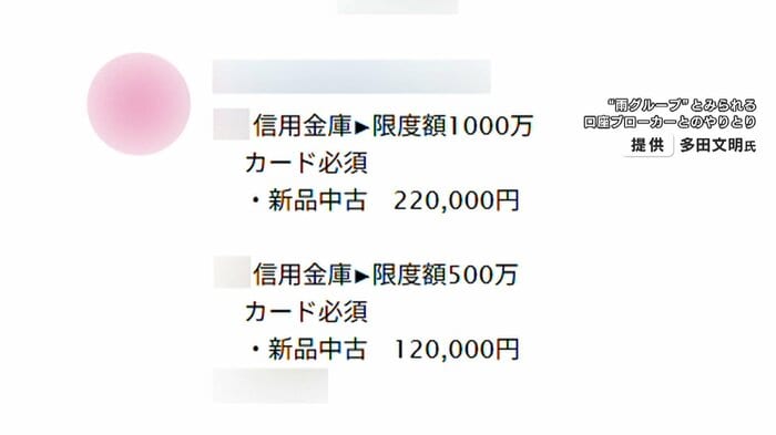 “口座ブローカー”は、闇バイトを募集して銀行口座を開設させ、カードや口座情報を購入。それを特殊詐欺グループなどに転売する仲介役です。