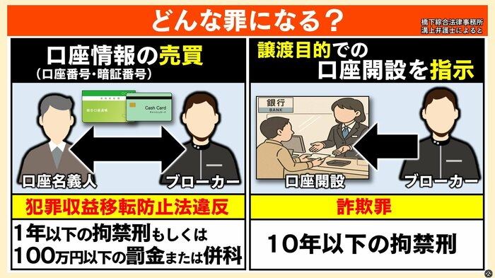 “口座ブローカー”に関わる犯罪 どんな罪に?