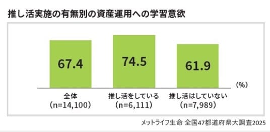 好きな対象を応援するために時間やお金を費やす主体的な行動は、金融リテラシーの向上にもつながる可能性があります。今回の調査では、推し活をしている人は、していない人に比べて資産運用に関する学習意欲が高い傾向が確認されました。