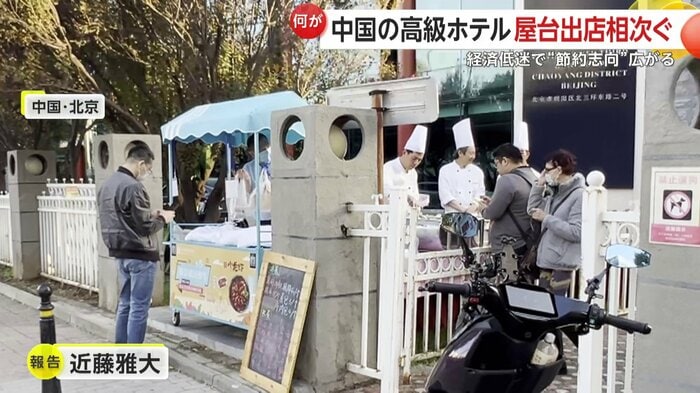 こちら北京にある高級ホテルなんですが、ホテルのシェフが路上に出て屋台を運営しています 。