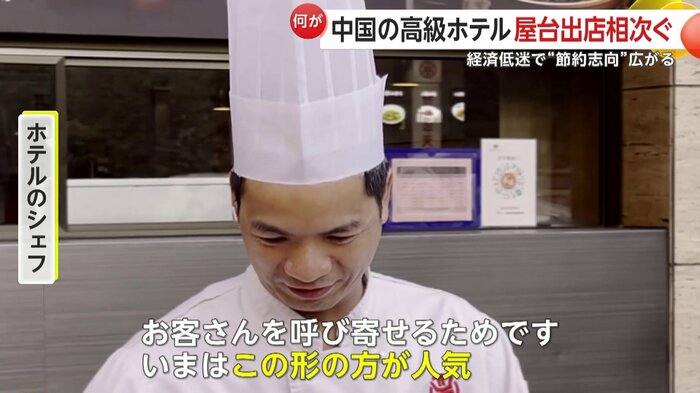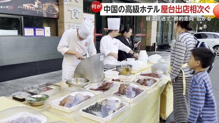 中国では経済低迷のなかで、高級ホテルの一流シェフが路上で料理を作る屋台販売を行うケースが相次いでいる。消費者の節約志向や当局の倹約令などが原因とみられるが、経済低迷は若者の就職難など幅広く影響を及ぼしている。専門家は日本経済への影響の可能性も指摘する。