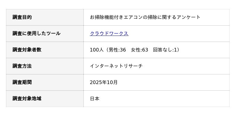 お掃除機能付きエアコンの掃除に関するアンケート調査の概要