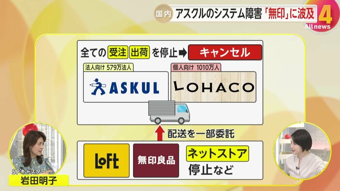 改めて今回のシステム障害を見てみますと、サイバー攻撃の被害に遭ったのは法人向けにオフィスや事務用品など幅広く商品を扱うアスクルと、個人向けに日用品などを扱うロハコ。こういった企業が商品の受注や出荷を停止しています。それから、アスクルの子会社に配送の一部を委託している「無印良品」や「ロフト」でもネットストアを停止するなど、影響が拡大しているわけです。すでに受け付けた注文に関しては、アスクルとロハコの場合はキャンセル扱いになってしまうということで、影響が大きく出そうですね。