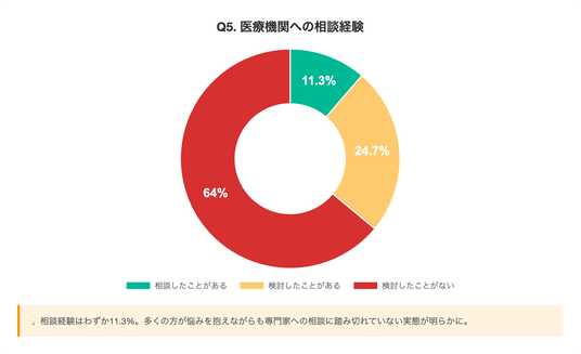 その結果、実際に相談したことがある方はわずか約11%で、多くの方が悩みを抱えながらも専門家への相談に踏み切れていない実態が明らかになりました。