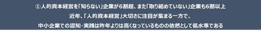 近年、「人的資本経営」大切さに注目が集まる一方で、中小企業での認知・実践は、昨年よりは高くなっているものの依然として低水準である