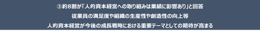 3.それでも約8割が「人的資本経営への取り組みは業績に影響あり」と回答。