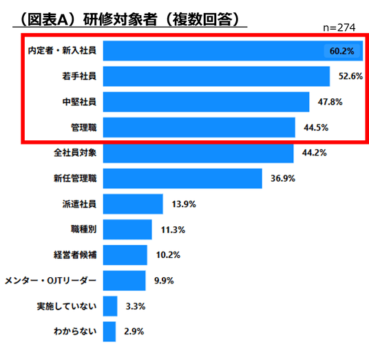 (1)階層別研修が主流 中心層は内定者・若手・中堅社員