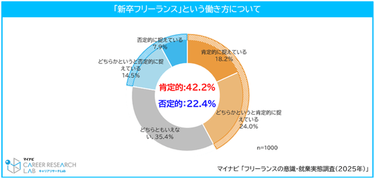 ◆42.2%が「新卒フリーランス」という働き方を肯定的に捉えている