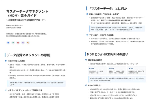 ~最新の実践とリサーチを踏まえて、MDMの基礎からガバナンス、技術選定、KPI設計、実装ロードマップまでを俯瞰し、明日から使える具体策に落とし込み~