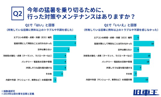 - 調査内容:Q1.今年の例を見ない猛暑の影響で、所有している旧車に例年以上のトラブルや不調(故障、異音、水温上昇、エアコン不調など)を感じましたか?