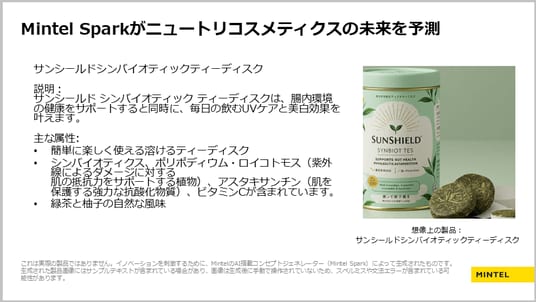 次に本セクションで紹介した消費者の嗜好やインサイト、今後商機のあるホワイトスペースを基に、ミーガンはMintel Spark*を使用して日本の消費者に提案すべき商品例を作成し、提示しました。