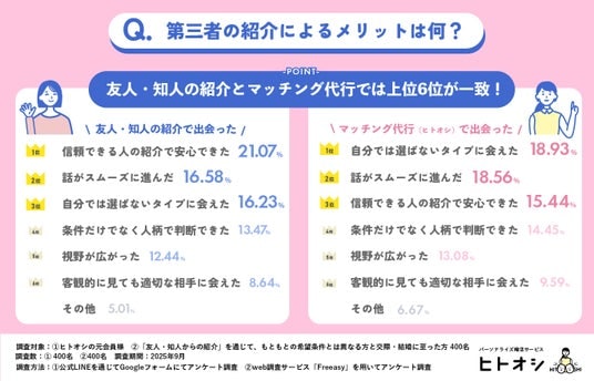 その結果、友人・知人の紹介と共通する効果が見られる一方で、マッチング代行ならではの効果も明らかになりました。