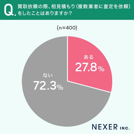 買取依頼時に複数業者への相見積もりをした経験については、「ない」と回答した方が72.3%を占めました。