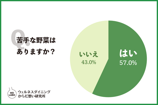 ・ 57%が「苦手な野菜がある」と回答し、年代を問わず広く存在