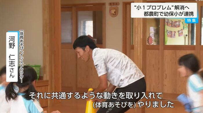 河野さんはこのあと都農町の小学校にも派遣され、体育の授業の一環として同様の「体育あそび」を行う予定だ。