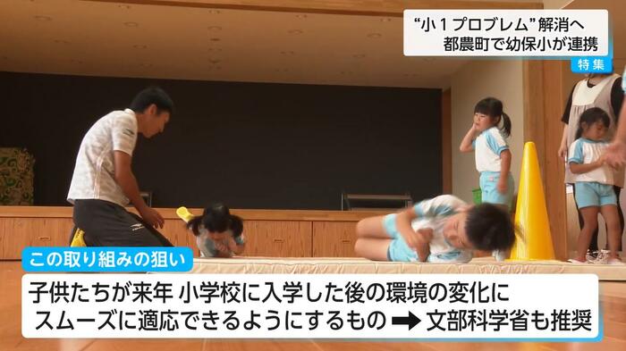 「小1プロブレム」という言葉をご存じだろうか。この問題に対応するため、来春小学校に入学する園児の不安解消に向けた幼保小連携の取り組みが本格化している。体育や英語の「あそび」を共通化することで、新しい環境へのスムーズな適応を目指す。