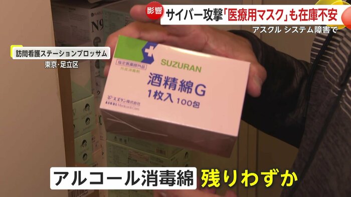 東京・足立区にある訪問看護を行う会社では、アルコール消毒用の綿が残りわずかに迫っていた。