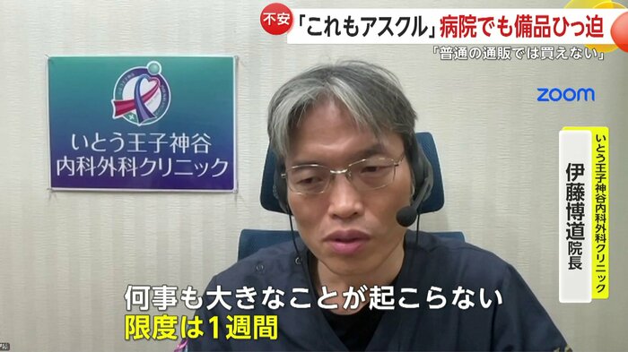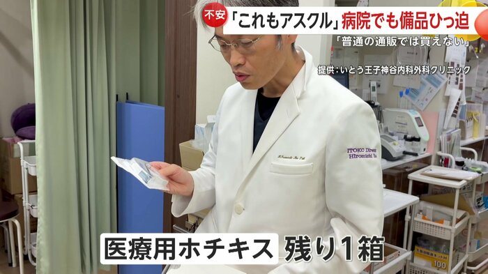 東京都内にあるクリニックでも、一部の医療用品の在庫がひっ迫する事態に陥っていた。
