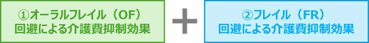 本プログラムの普及によって期待できる介護費抑制効果を、1.オーラルフレイル(OF)回避および2.フレイル(FR)回避それぞれについて試算しました。