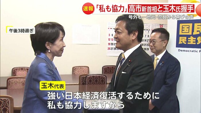 国民民主党の玉木代表とは、固い握手を交わした。