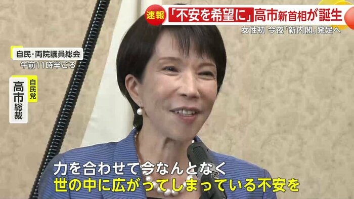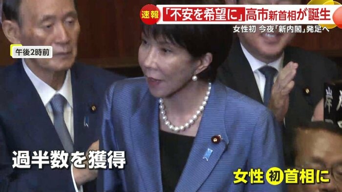 高市氏が、衆議院の1回目の投票で過半数を獲得し、“女性初”となる総理大臣の誕生が決まった。