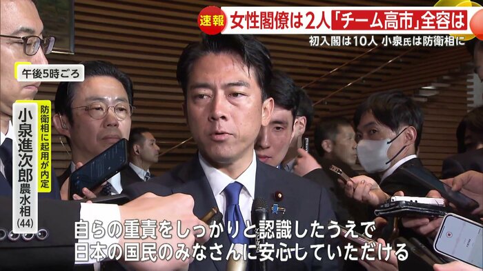 総裁選で戦った、小泉農水大臣が防衛大臣に。