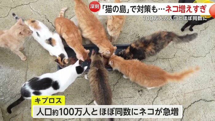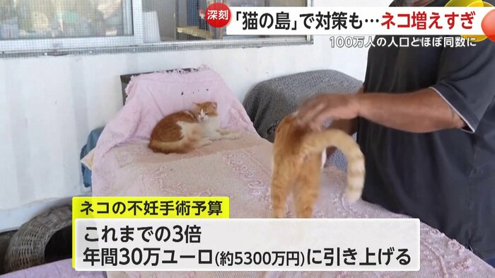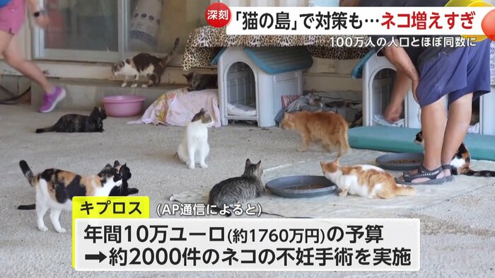 AP通信によると、キプロスでは、ネコの不妊手術を年間10万ユーロ、日本で約1760万円の予算で約2000件実施。