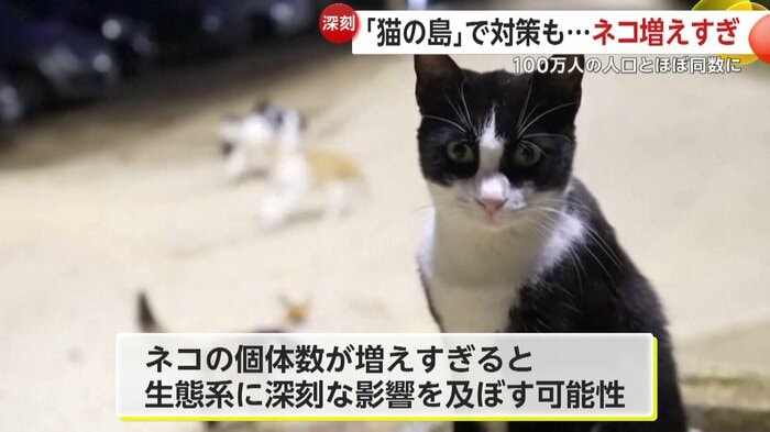 一方で、ネコの個体数が増えすぎると、生態系に深刻な影響を及ぼす可能性があり、早急な対応が求められている。