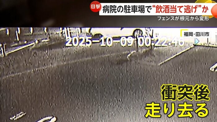 福岡・田川市の病院の駐車場で9日深夜、カメラが捉えたのは、車がフェンスに衝突するも走り去って行く当て逃げの一部始終だ。