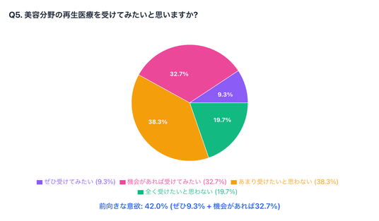 美容分野における再生医療(PRP療法、幹細胞治療など)を受けてみたいと思うか調査しました。