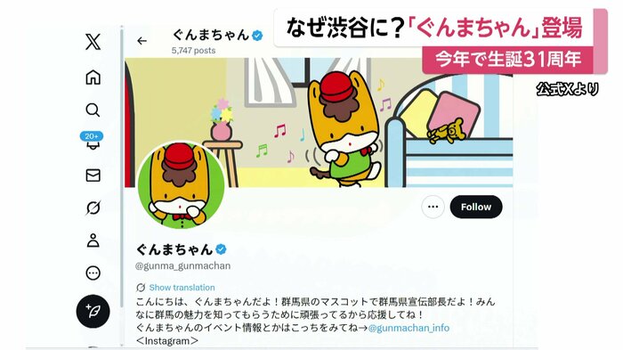 人気ゆるキャラの「ぐんまちゃん」が22日から渋谷に登場。