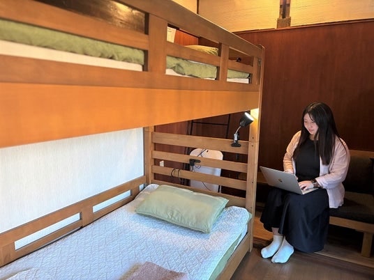 城戸口:「私も最初にOKUに来た時は緊張していて、個室を使っていたんですよ。でも、洋子さんが他のお客さんとの会話の輪に入れてくれたりしたおかげで馴染めるようになって。今では相部屋で、他のお客さんとの交流も楽しみながら滞在できるようになりました」