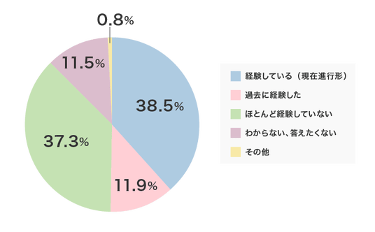 更年期太りが進行中の方は4割近くになり、過去に経験した方を合わせると5割をこえました。