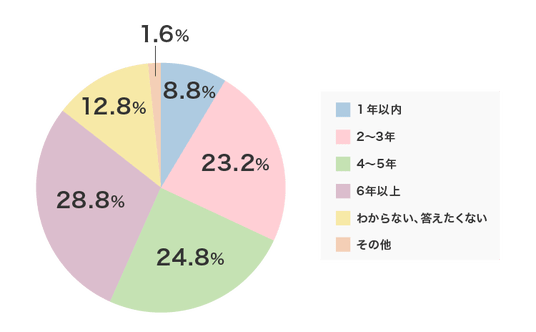 6年以上という回答に、4~5年という回答を加えると5割をこえました。