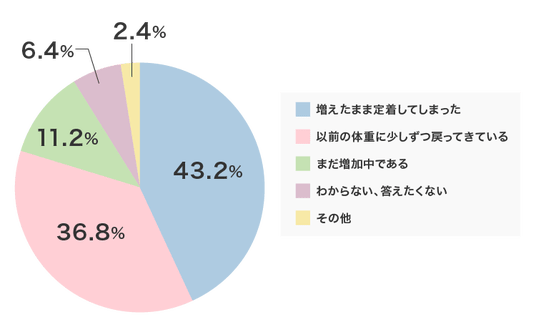 「増えたまま定着してしまった」という回答が「以前の体重に少しずつ戻ってきている」という回答を上回りました。