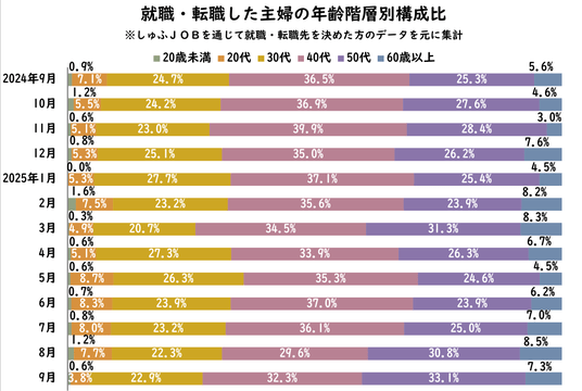 ビースタイルグループで求人サイト『しゅふJOB』を運営する株式会社ビースタイルメディア(本社:東京都新宿区、代表取締役社長:石橋聖文)は、掲載求人から採用に至った採用データから算出した「転職しゅふの平均年齢」を集計しました。