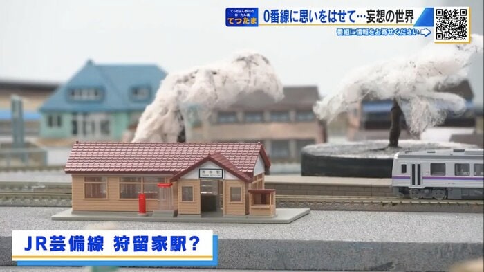 沿線の街並みも自由にレイアウトされ、見る角度を変えるとJR芸備線の志和地駅にも狩留家駅にも見える。