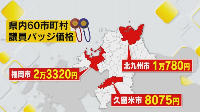 現時点で福岡県内の各自治体の議員バッジは、どうなっているのか?県内60市町村全てを対象に材質や価格について独自調査したところ、7割以上の自治体が、1個5000円前後の『金メッキ』仕様であることが分かった。