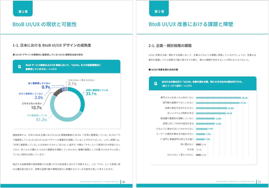 本白書は、1,000名を超えるUI/UX業務経験者への調査と、私たちが現場で培った知見を統合し、「なぜBtoB UI/UXは難しいのか」「どうすれば改善できるのか」という問いに、データと実践の両面から答えるものです。