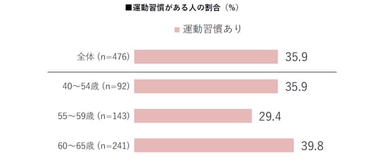 - 厚生労働省定義の「運動習慣がある」(※2)該当する人は全体の36%。