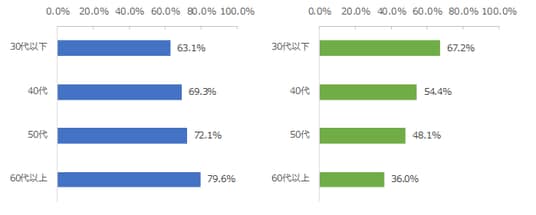 【年代】20代以下:2.2%、30代:8.8%、40代:23.3%、50代:36.0%、60代以上:29.6%