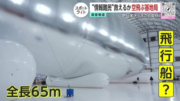 格納庫の中へ入っていくと、見えてきたのは全長65メートルにも及ぶ、飛行船のような機体だ。