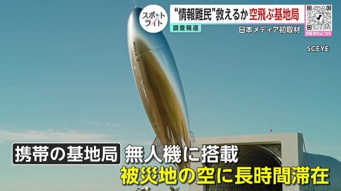 ここで開発されているのは、日本のソフトバンクが投資する「空飛ぶ基地局」。携帯の基地局を無人機に載せ、被災地の上空に長時間滞在させる。