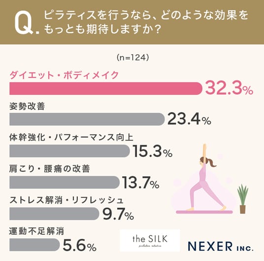 そこで今回は、マシン専門ピラティススタジオ『the SILK(ザ シルク)』と共同で、事前調査で「ピラティスをやったことがある・興味がある」と回答した全国の女性124名を対象に「ピラティス」についてのアンケートをおこない、その結果をサイト内にて公開したので紹介します。
