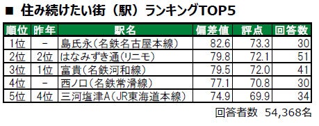 ■住み続けたい街(駅)トップは、初登場の島氏永