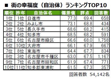 ■街の幸福度(自治体)トップは、3年連続で日進市