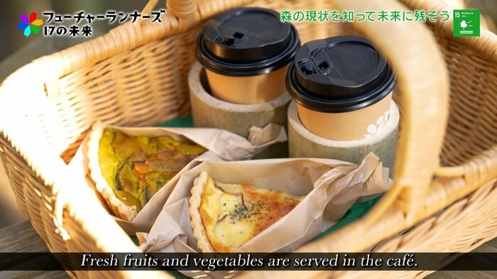 イスを移動させて好きな場所でカフェを楽しむことも可能で、手作りのツリーハウスやデッキでゆっくりと自然を感じ、森の役割や課題も学べる。