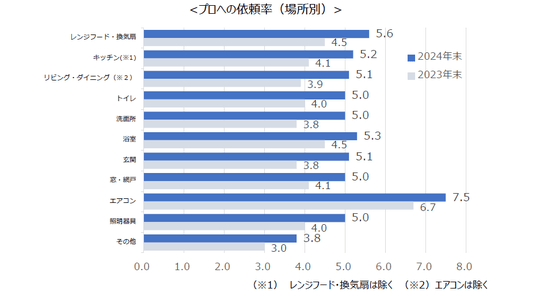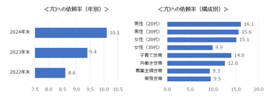 ・年末の大掃除のプロへの依頼率は10.1%。2022年と比較すると微増傾向にある